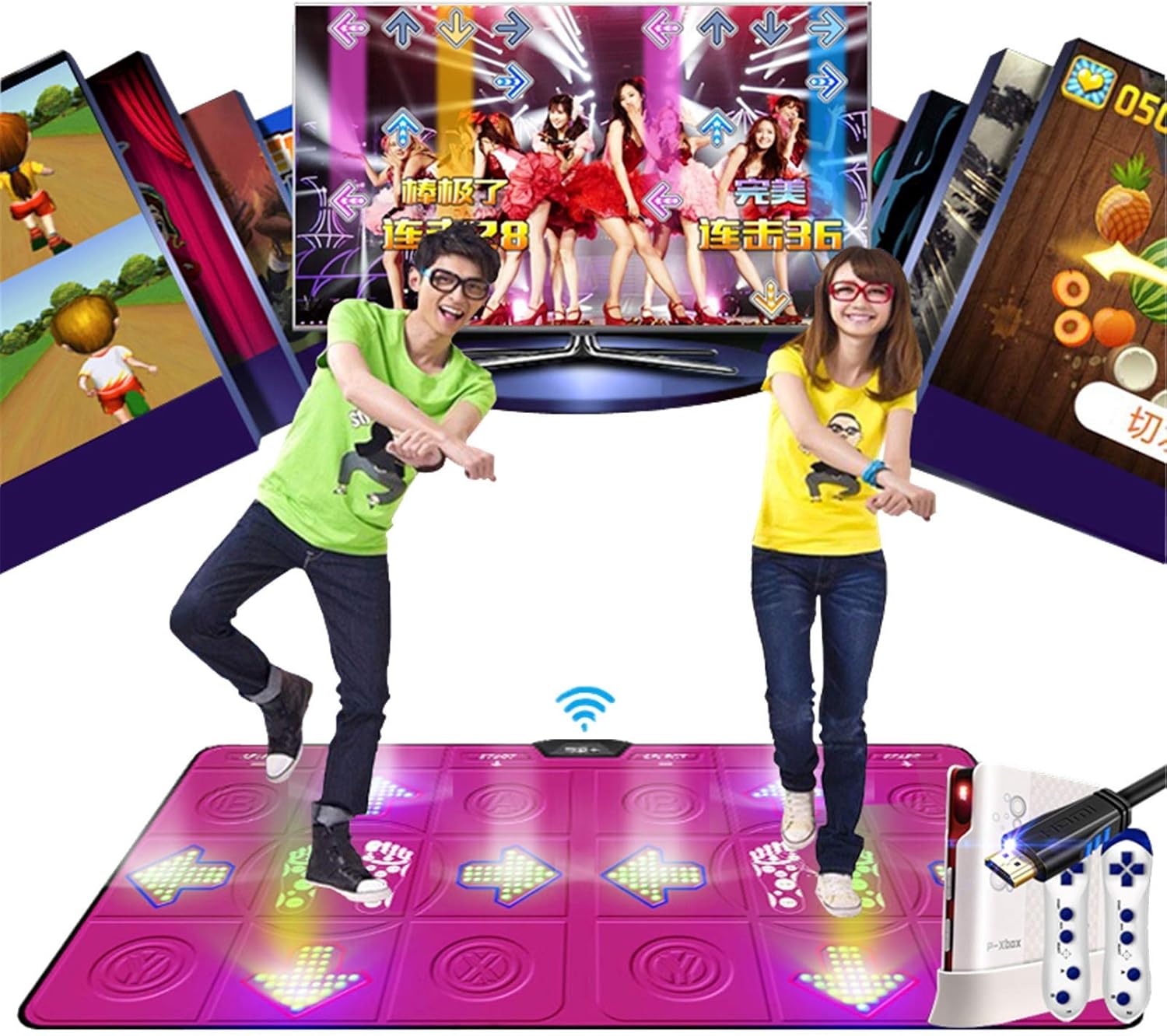 ライトアップゲームダンスマット ワイヤレスダブルダンスステップパッド アーケードスタイルダンスゲーム体性感覚ゲームパッドtvビデオゲームフィットネスパーティーホーム用ヨガ 至高 ピンク